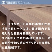 日本国内で製造された化粧紙を採用しており、天然木突板にも見劣りしない美しい外観なのでリビングへの設置にもおすすめです。